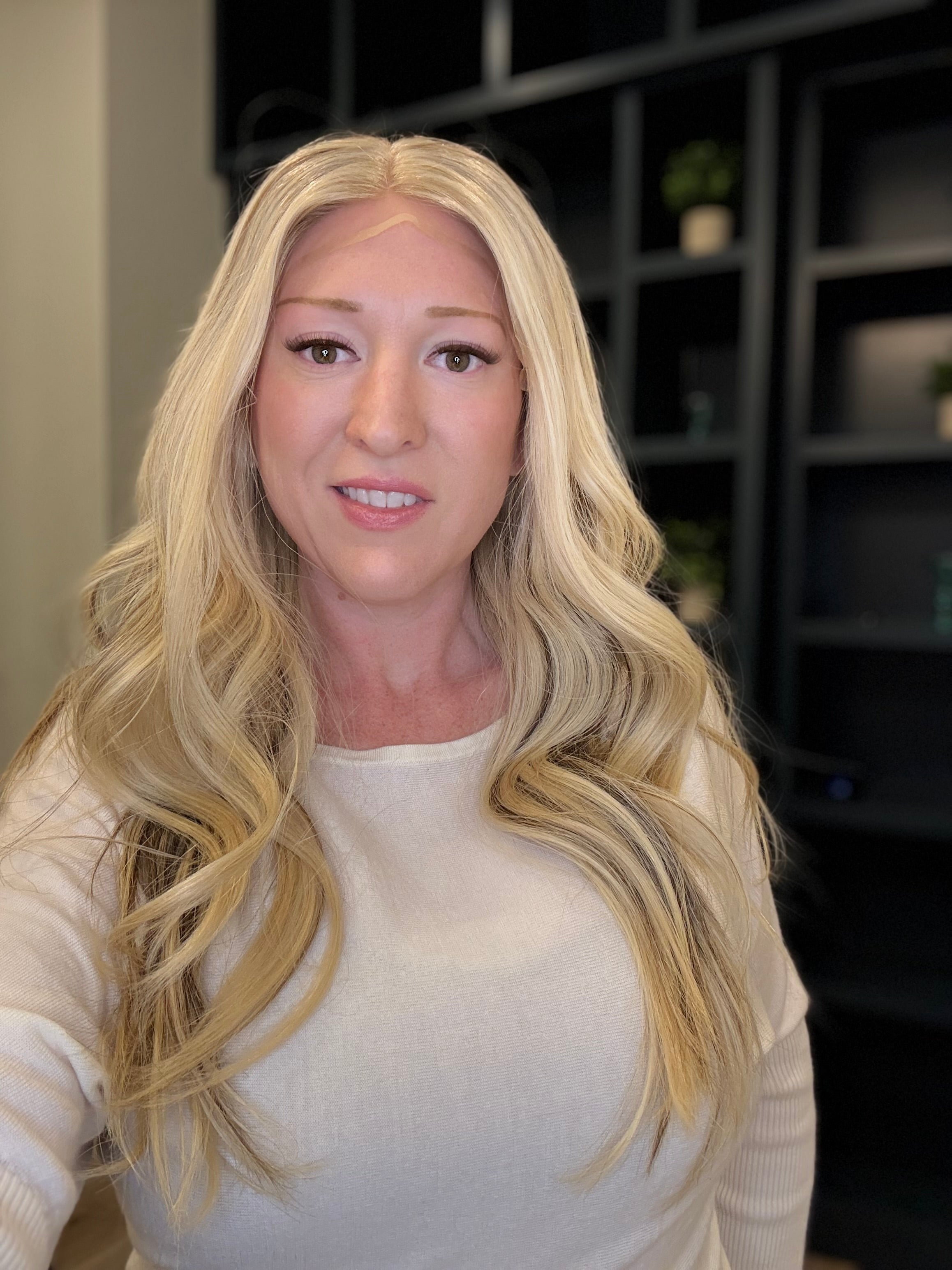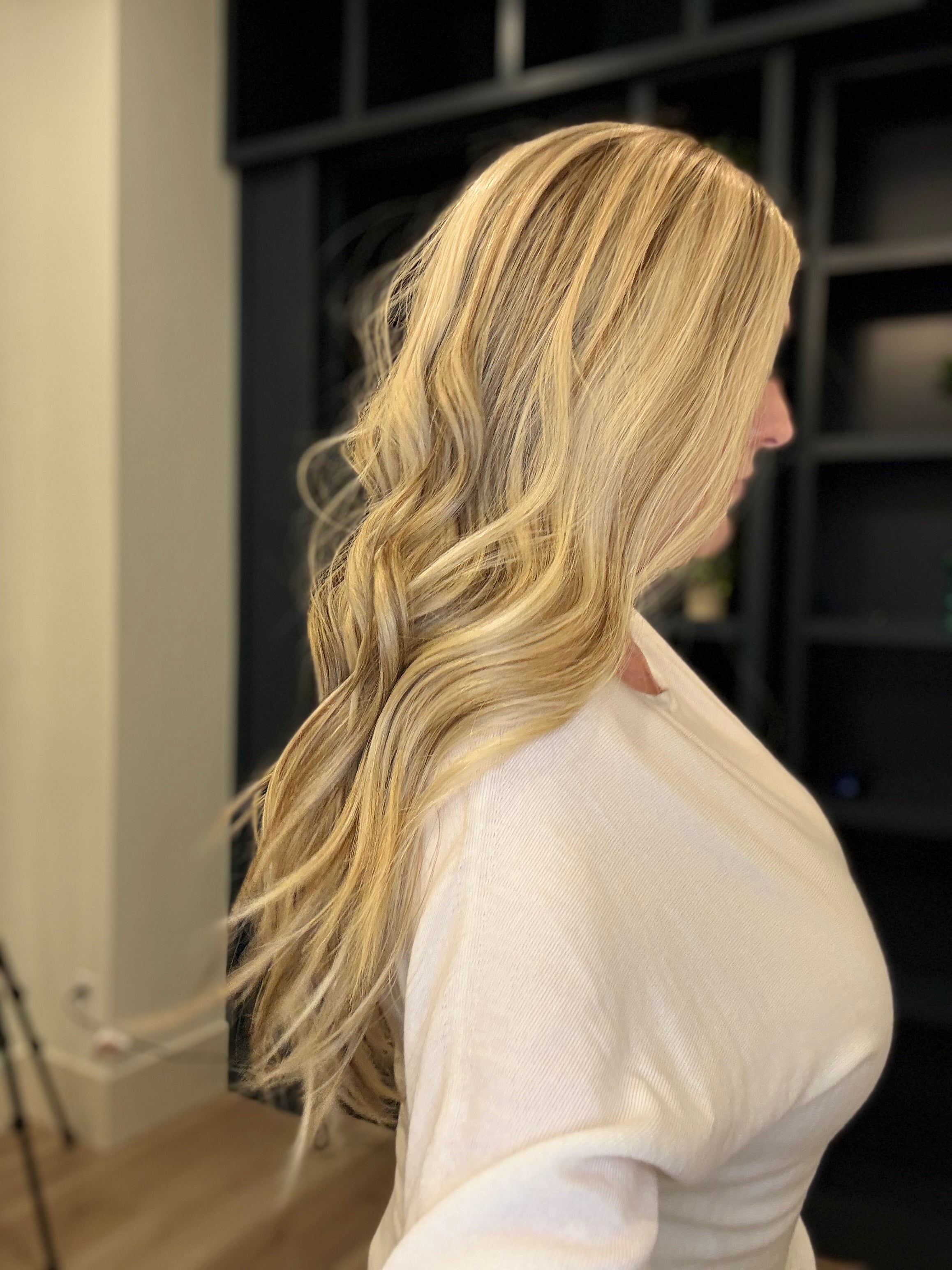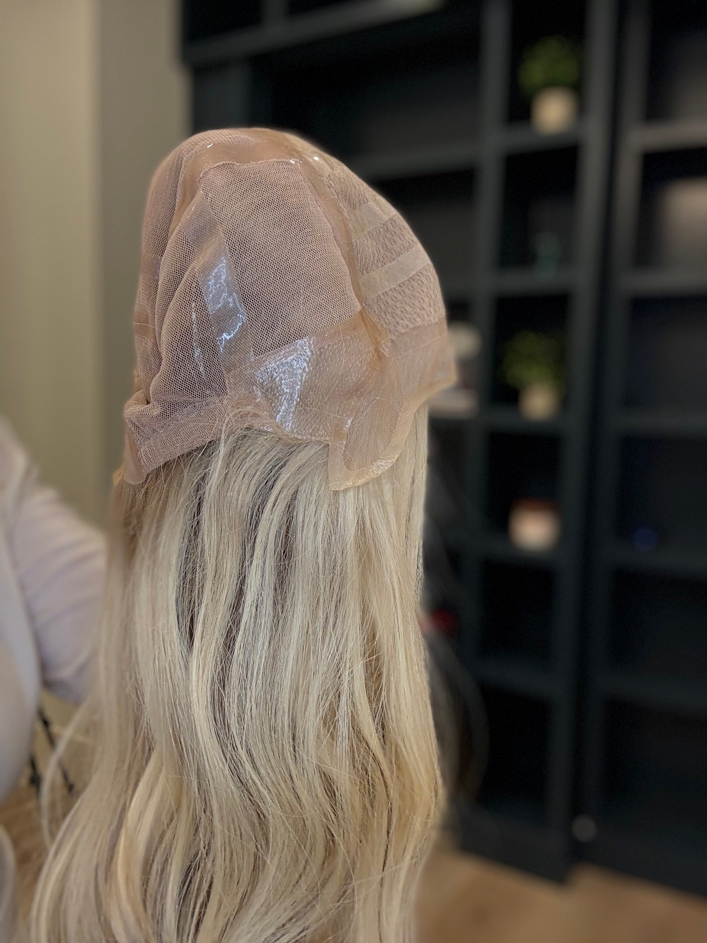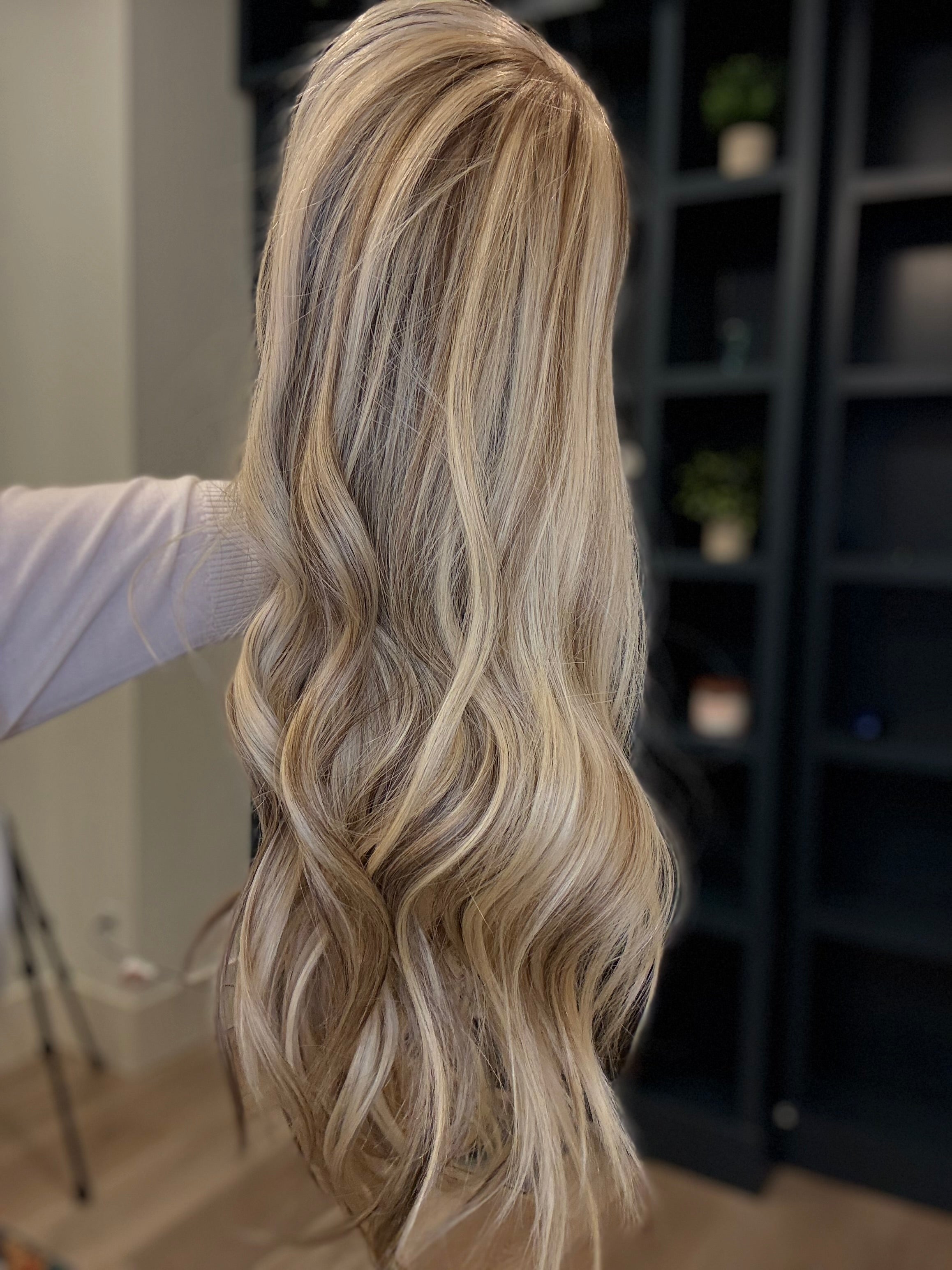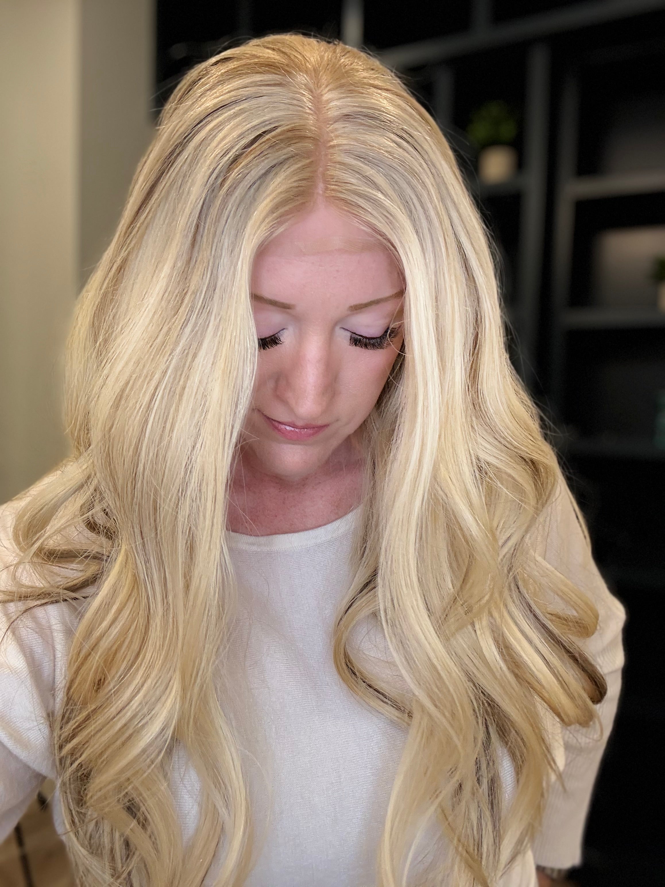 beautiful light butter and platinum blonde with heavy dimension (no rooting)